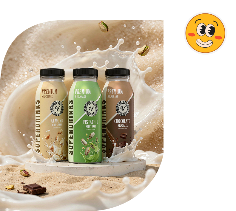 SuperDrinks Milkshakes combine rich flavor with nourishing goodness. Whether you’re craving our Chocolate Milkshake, nutty Almond Milkshake, or delightful Pistachio Milkshake, each bottle delivers the perfect mix of taste and nutrition.